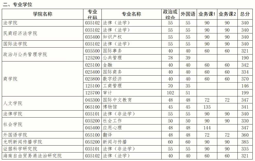 各位考生: 经学校研究生招生委员会研究决定,现将我校2026年全国硕士研究生招生考试考生进入复试的初试成绩基本要求(以下简称“复试分数线”)公布。我校一志愿考生线下复试将于3月21日至28日期间陆续组织开展,其中公共管理专业学位、商学院复试工作将于3月21日至23日进行,其余各学院各专业复试工作将于3月24日至28日进行,请达到我校复试分数线能够进入复试的考生提前做好准备。 相关说明: 一、考生初试成绩(单科及总分)须达到所报考专业复试分数线要求,同时符合教育部《2026年全国硕士研究生招生工作管理规定》及我校招生章程中公布的报考条件,方可进入复试。 二、根据教育部文件规定,符合下列条件之一后3年内报名参加全国硕士研究生招生考试(不含单独考试)的考生,可申请享受初试总成绩加10分,同等条件下优先录取。 1.参加“大学生志愿服务西部计划”“三支一扶计划”“农村义务教育阶段学校教师特设岗位计划”“国际中文教育志愿者”项目之一,服务期满且考核合格。 2.退役大学生士兵〔即高校学生应征入伍退出现役者,其中,高校学生指全日制普通本专科(含高职)、研究生、第二学士学位的应(往)届毕业生、在校生和入学新生,以及成人高校招收的普通本专科(含高职)应(往)届毕业生、在校生和入学新生〕达到全国硕士研究生招生考试报考条件。 申请享受初试加分的考生,须在网上报名时按要求填报相关信息。有关部门按职责分工进行审核。未按规定申报或审核未通过的,不享受加分政策。加分项目不累计。 符合加分条件的考生,需按我校要求提交相关材料。 三、对于报考“少数民族高层次骨干人才计划”的考生,我校先行按照考生定向省份对考生初试总分由高到低排序后(满分500分和满分300分专业的考生,将总分折算成百分制后进行比较,下同),根据各省招生计划,在上线考生范围内按照1:1比例确定进入复试的考生名单(以下简称“复试名单”)。在依据上述规则确定复试名单后,如仍有剩余计划,则不再区分省份,对所有上线但未进入复试名单的考生,统一按初试总分由高到低排序后,补充相应数量考生进入复试名单。中国石油大学(北京)克拉玛依校区研究生联合培养专项、依法治疆专项招生计划单列。 四、对于报考“退役大学生士兵”专项计划的考生,我校将根据教育部下达的专项招生计划数,按照复试后总成绩从高到低排序录取,需按我校《关于申请享受初试加分、照顾政策或报考退役计划考生提交材料的通知》要求提交相关材料。 五、在网上报名时已填报享受少数民族照顾政策且符合进入复试条件的考生,需按我校《关于申请享受初试加分、照顾政策或报考退役计划考生提交材料的通知》要求提交相关材料。 六、未按要求在规定时间内提交材料的考生无法享受相应照顾或加分政策。 七、我校2026年硕士研究生招生考试复试录取工作办法及复试相关信息,将于近期通过我校研究生院网站(https://yjsy.cupl.edu.cn)和“中国政法大学研究生招生”(zgzfdx_yjszs)微信公众号及时对外发布,请考生密切关注,耐心等待后续通知。 八、复试前,我校将在研究生院网站公布一志愿报考专业进入复试考生名单。 九、中国政法大学研究生招生办公室咨询及监督电话:010-58908070。 中国政法大学研究生招生办公室 2026年3月18日 |