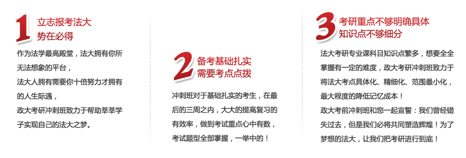 | 法学考前冲刺班 | 12月 | 面授\网授\法大 | 15800元 | 30人 |